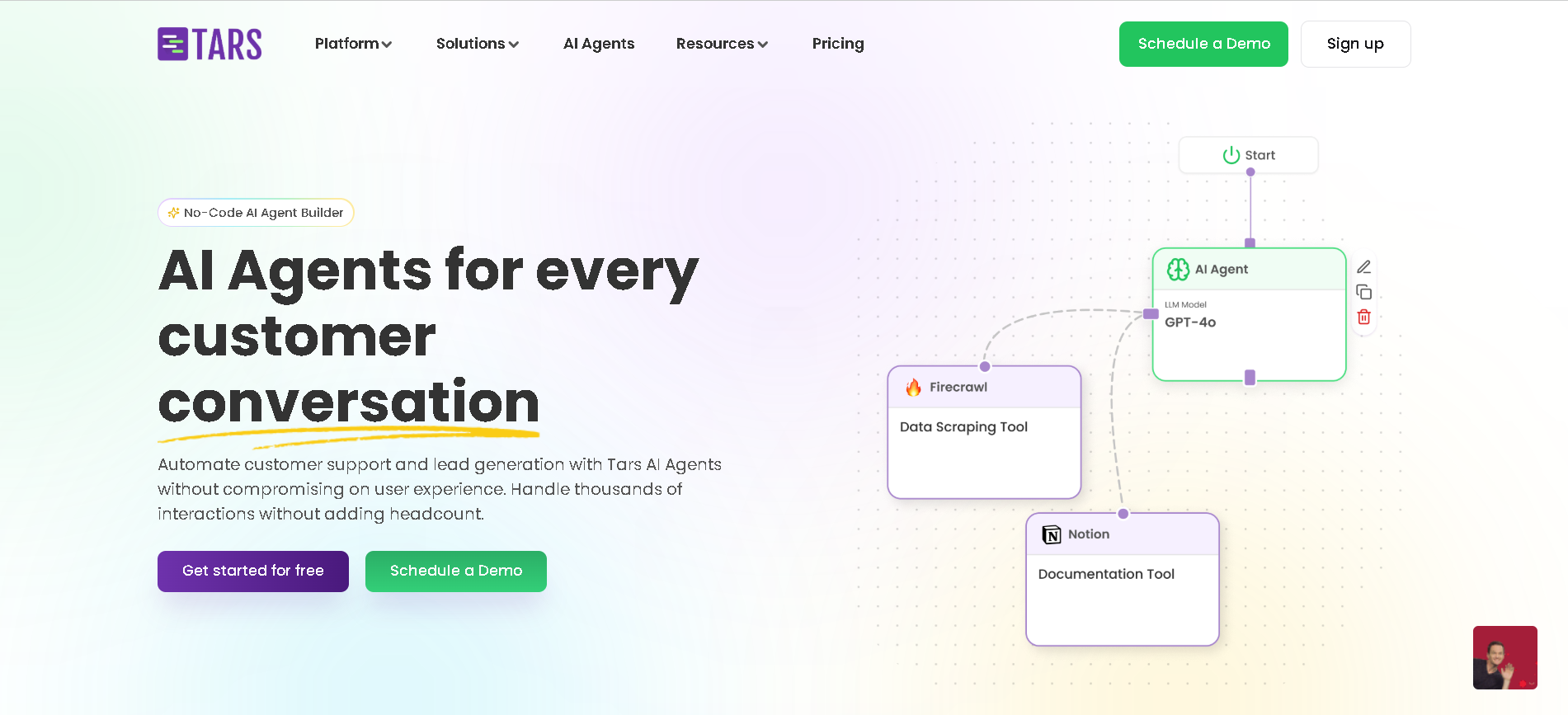 HelloTars is a no-code conversational AI platform that allows businesses to build intelligent AI chatbots and agents without writing code. It helps automate customer support, lead generation, onboarding, and FAQs through natural, human-like conversations powered by AI.