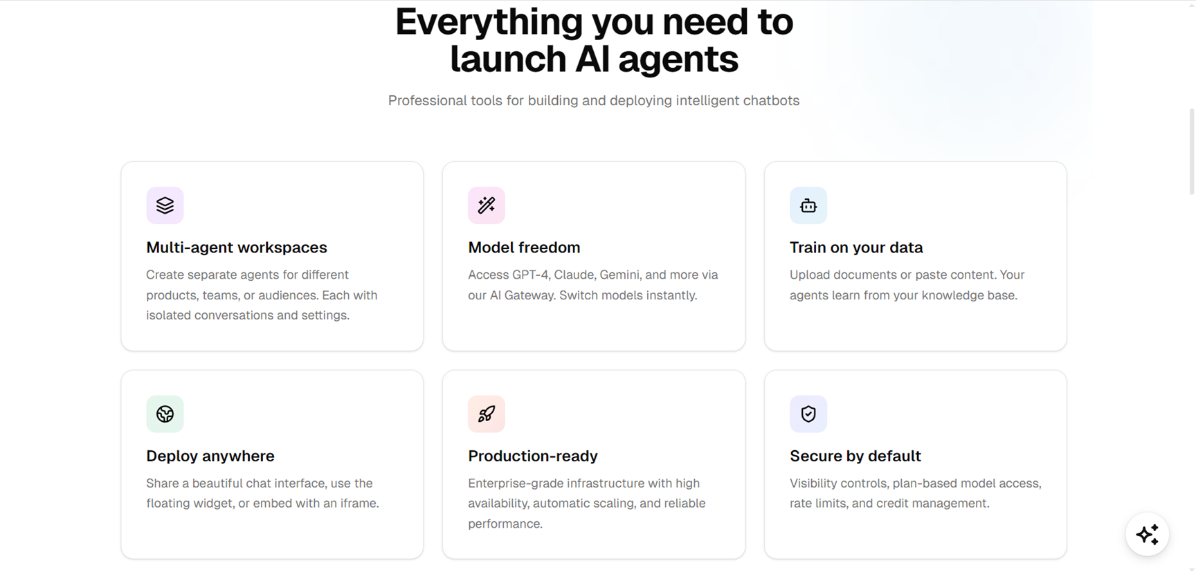 FastBots AI is a chatbot platform designed to let organisations create powerful multilingual bots trained on their website content, documents or files. These bots can integrate live web data, conversational models and custom workflows to respond to users, collect leads and support customers without coding.