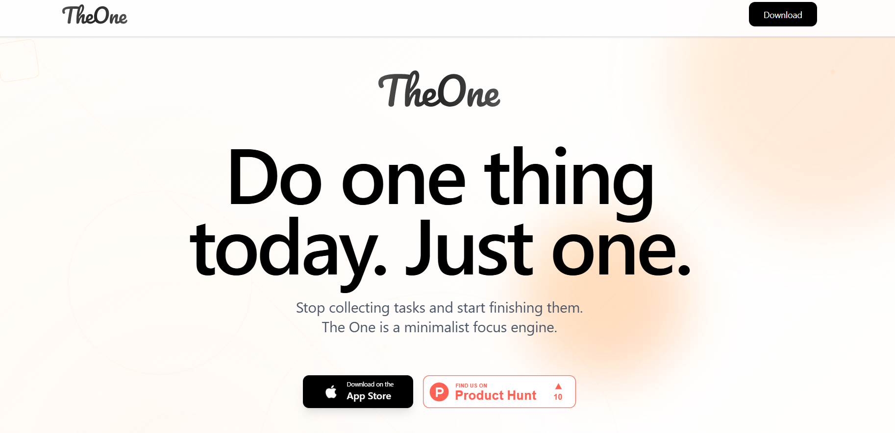 The One is a minimalist focus engine designed to help users stop collecting endless tasks and start finishing meaningful work. Instead of overwhelming to-do lists, it encourages users to focus on doing just one important thing each day. By reducing cognitive overload and decision fatigue, The One helps users build momentum, clarity, and a sense of progress. It is built for people who want simplicity and completion over constant task accumulation.