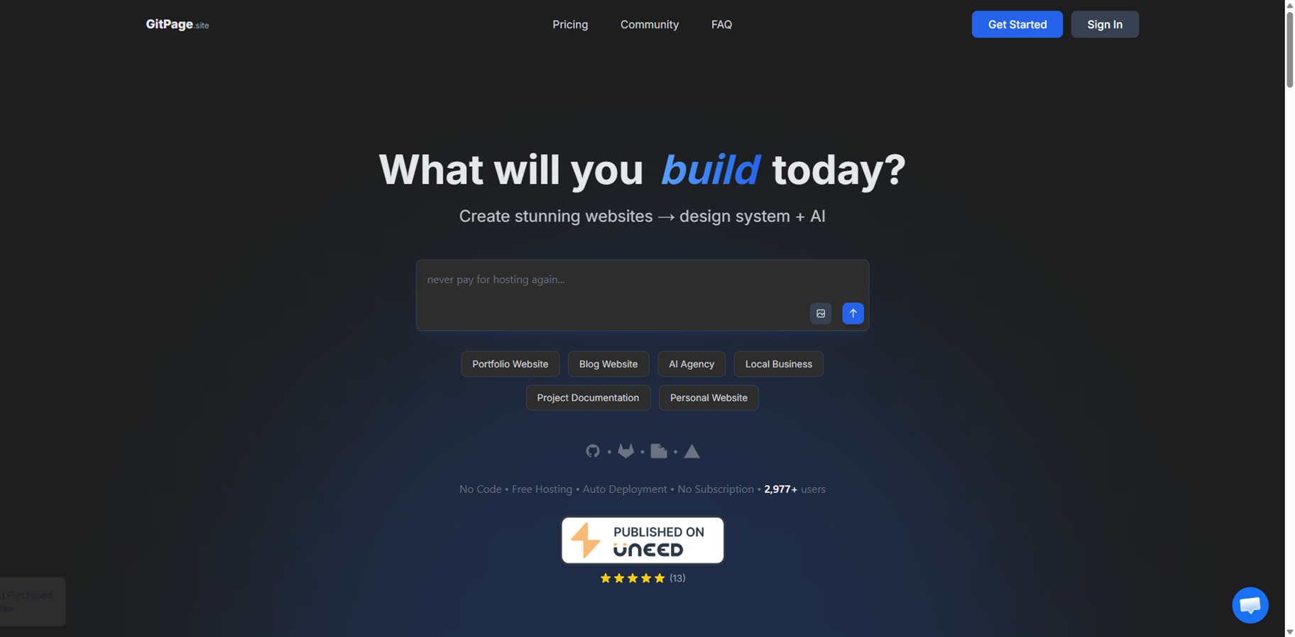 PageGPT is a cutting-edge AI landing page generator that creates stunning, unique designs instantly based on your product description and theme. It delivers tailored layouts, persuasive copywriting, and matching images without using generic templates, making every page feel custom-built for your brand. Users customize effortlessly through a chat interface, adding effects like animated gradients, hover tilts, or parallax scrolls just by typing natural language prompts. Pages come optimized for lightning-fast speeds, full mobile responsiveness, and conversion boosters such as CTAs, forms, and testimonials. Examples showcase diverse styles from luxurious photography portfolios to vibrant SaaS and ecommerce sites.