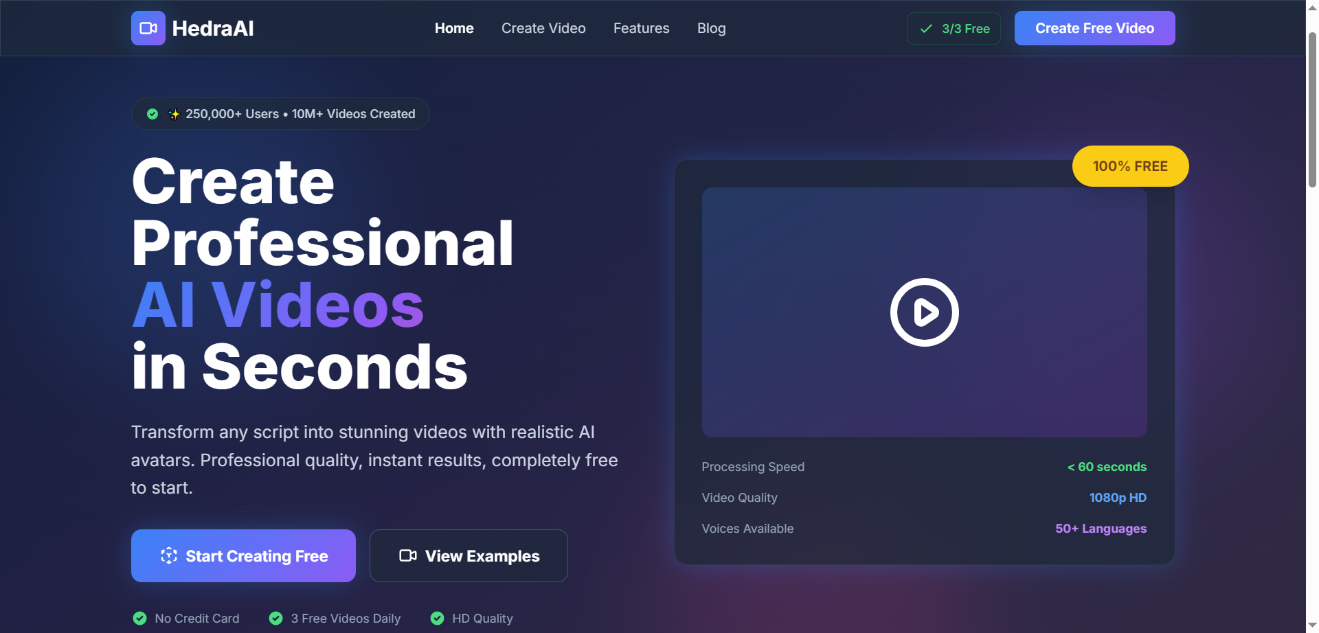 Humva is an AI video creation platform that turns a single sentence or full script into a complete, auto-edited video in one click. It combines realistic talking avatars with automatic A‑roll and B‑roll generation, basic editing, and support for 30+ languages to deliver explainer, marketing, and training videos fast. Users can pick from thousands of diverse avatars or create a custom avatar from a single photo, set aspect ratios for social or widescreen, and generate multiple clips that Humva stitches together. Videos are capped at three minutes, making it ideal for short-form content and rapid iteration without complex tools or manual editing.