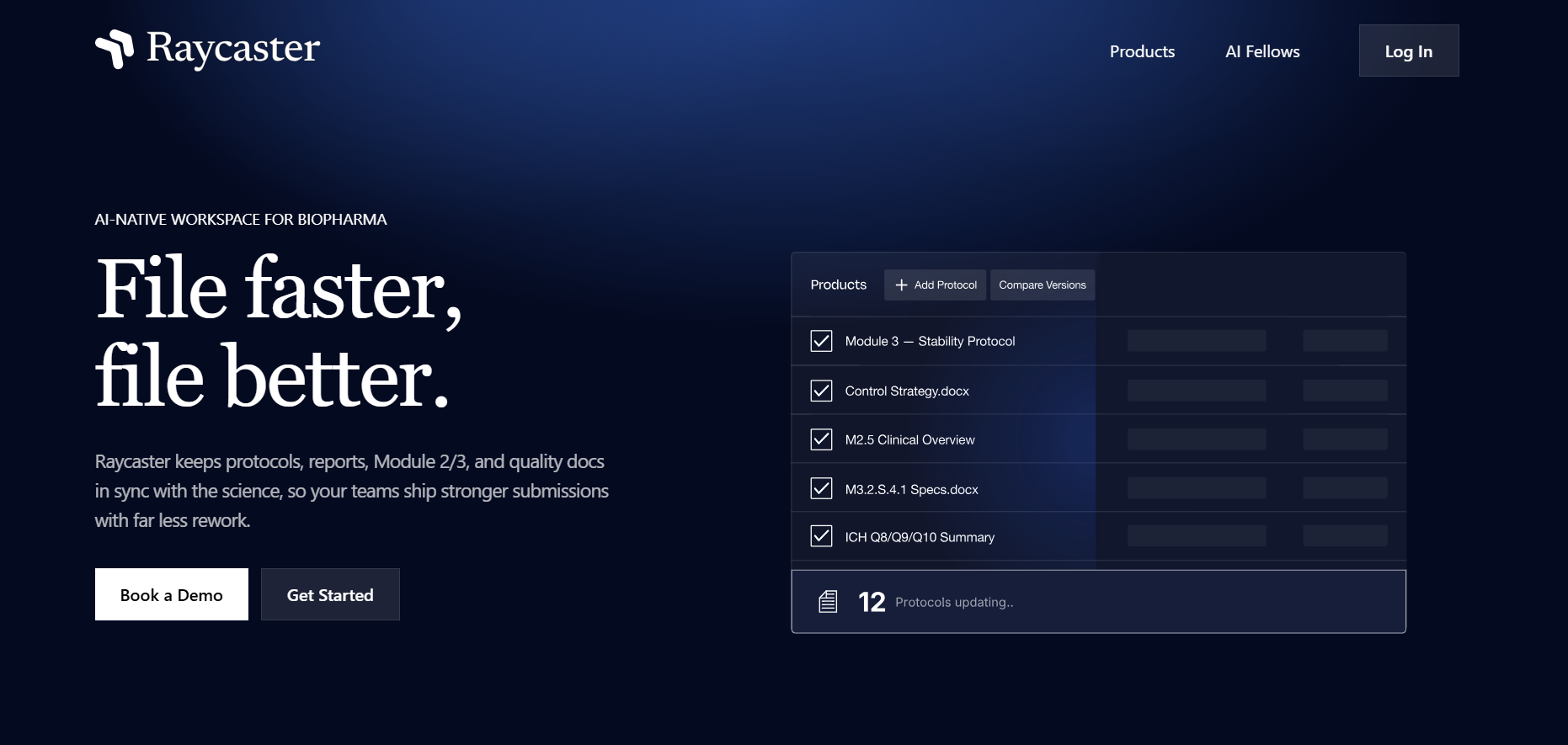 Raycaster is an AI-native workspace built specifically for biopharma teams to manage regulatory and scientific documentation with precision. It keeps protocols, reports, Module 2/3 submissions, and quality documents synchronized with evolving science. By reducing rework and misalignment, Raycaster helps teams file faster and with greater confidence. The platform is designed to support collaboration, traceability, and consistency across regulatory workflows, enabling stronger submissions and smoother approvals.