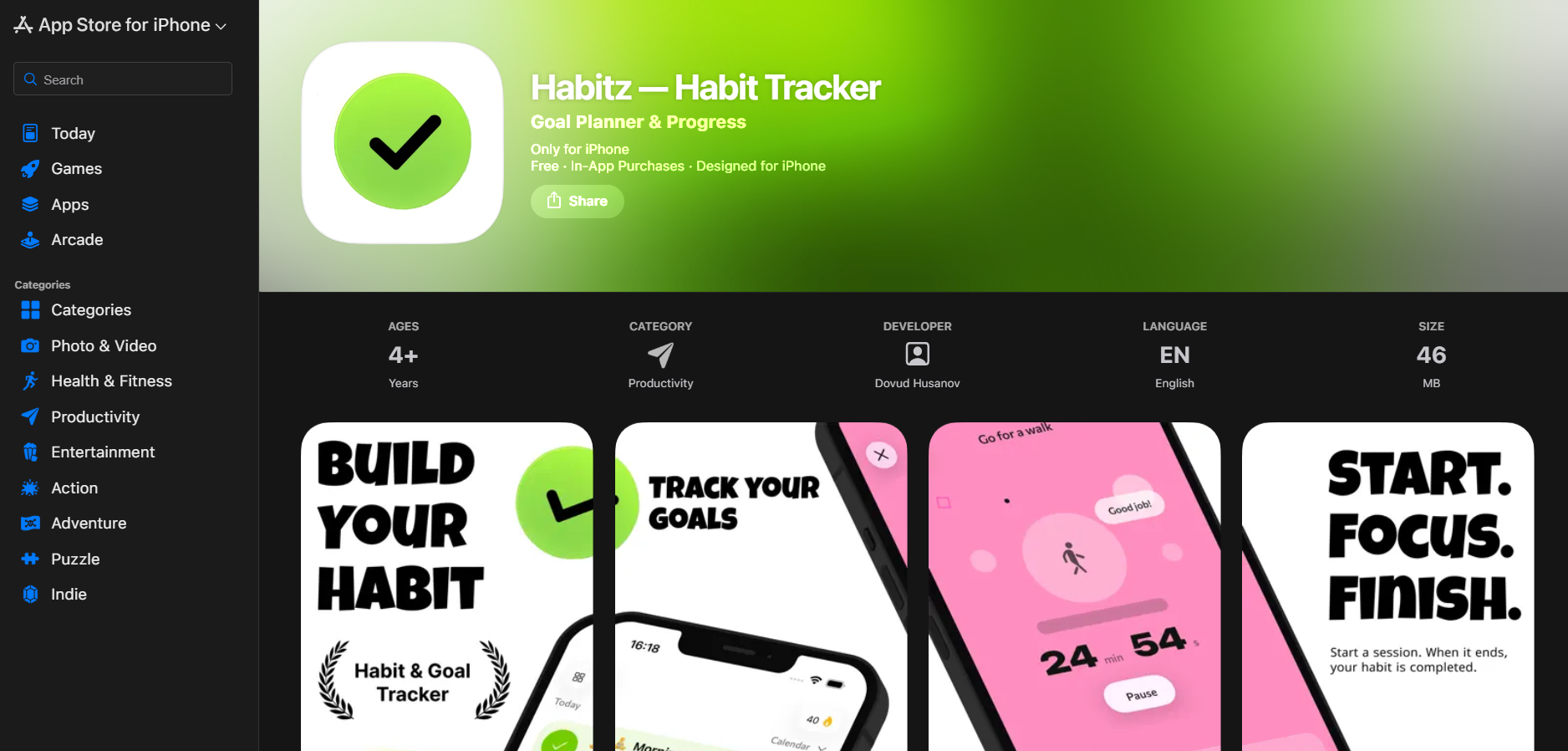 Habitz is a modern habit tracker designed to help users build consistency and long-term change through small daily actions. The app focuses on simplicity and clarity, enabling users to start habits easily, stay focused every day, and track real progress over time. Whether the goal is building healthy routines, improving productivity, quitting bad habits, or adding structure to daily life, Habitz keeps users accountable without overwhelming them. Its minimalist design supports steady progress rather than perfection.