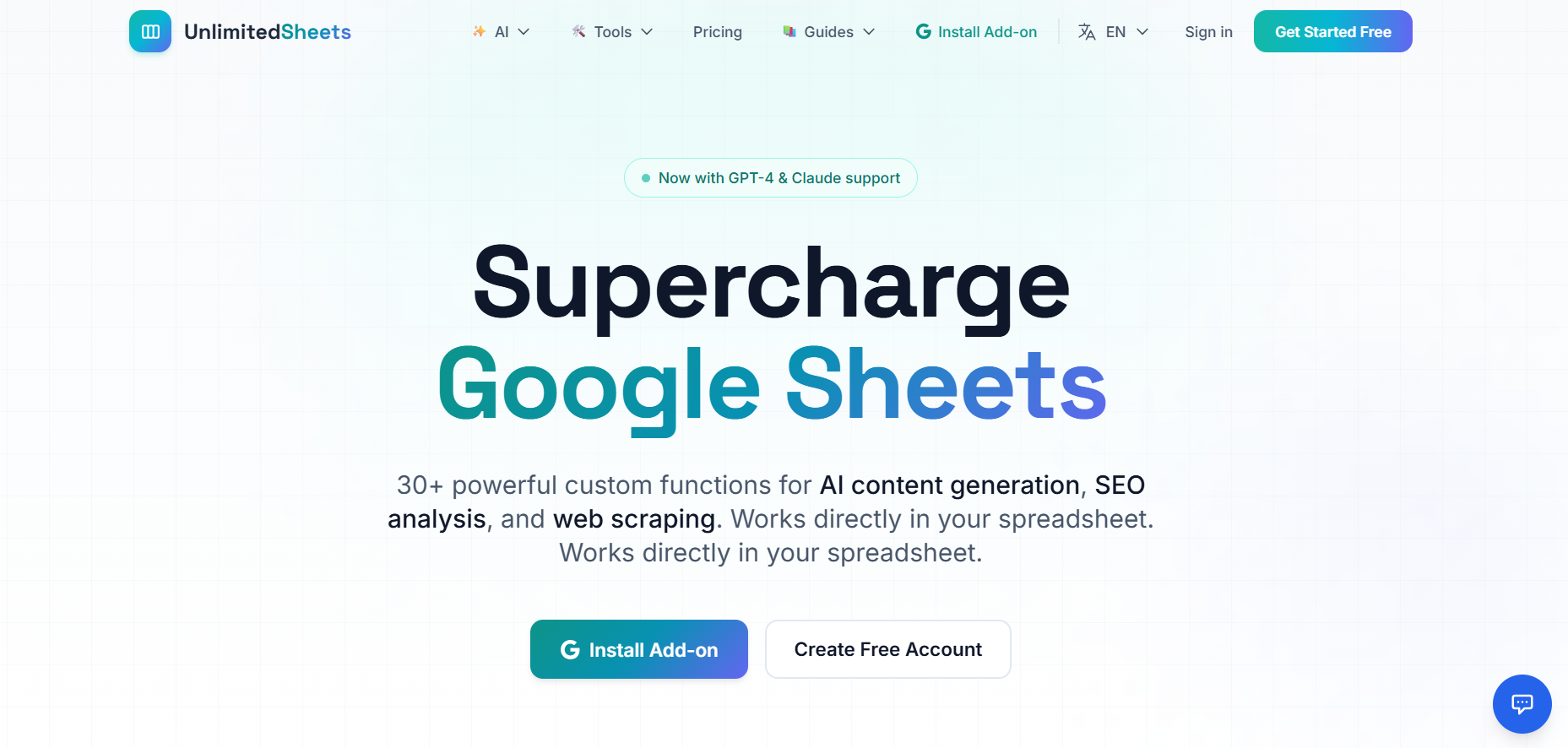 AI Sheets is a versatile AI platform that transforms static study materials and datasets into interactive learning tools and smart spreadsheet workflows. It offers an AI Worksheet Generator for creating quizzes, flashcards, mind maps, and activities from PDFs, text, audio, or YouTube links, alongside a Google Sheets add-on that brings AI formulas for content generation, data analysis, web research, and even image creation. With LaTeX support, editable outputs, and printable PDFs, educators and learners get active learning materials fast, while analysts and marketers leverage AI-driven functions directly in Sheets for research, cleanup, and automation.