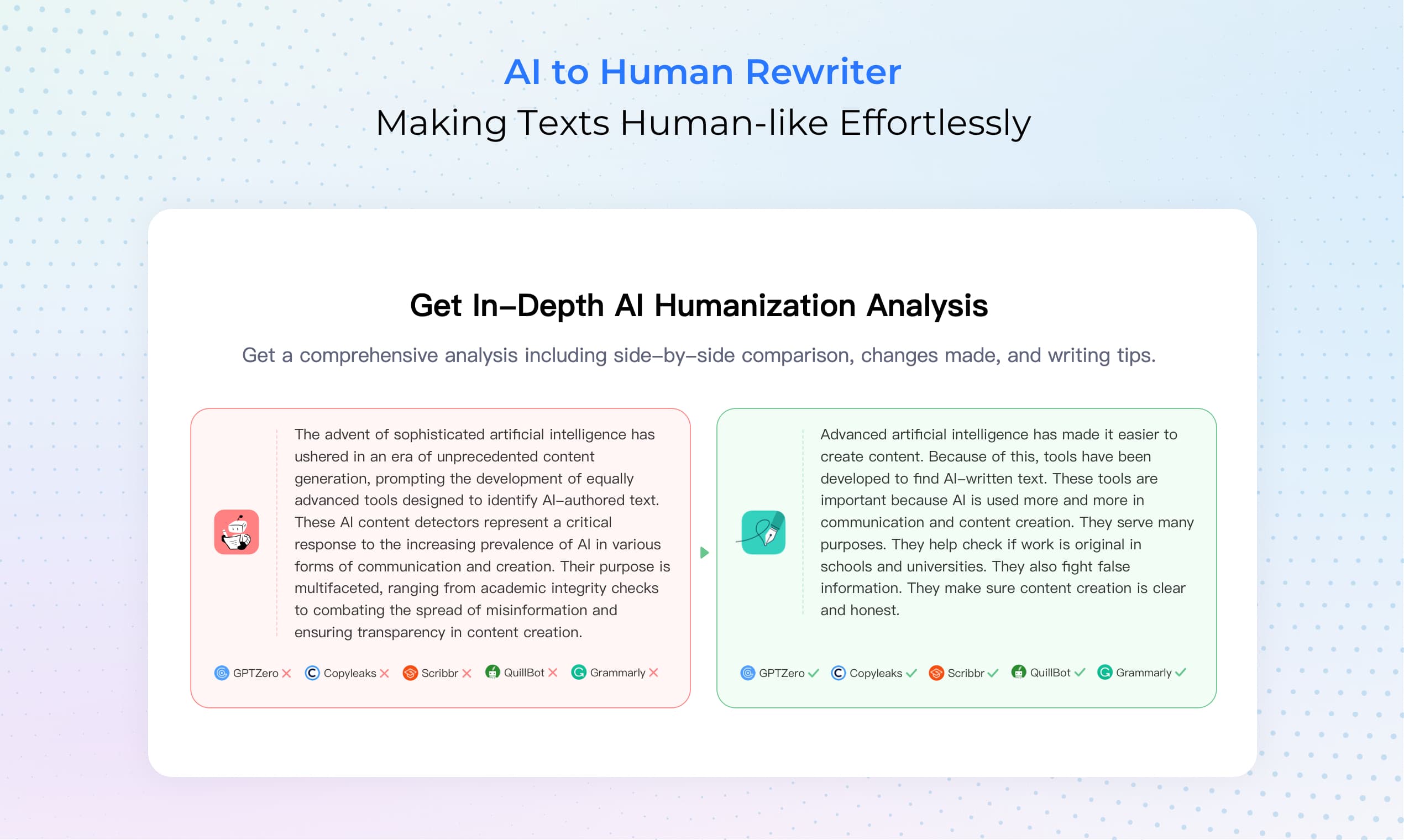 Tenorshare AI Bypass is a powerful AI tool designed to help users circumvent AI-generated content detection systems. Whether you're a student, content creator, or researcher, this platform allows you to humanize AI-generated text, enabling it to pass AI detection tests like GPTZero, Turnitin, and Originality.ai. The tool specializes in transforming robotic or obviously synthetic text into natural-sounding human content, preserving the intent and meaning while enhancing originality. It’s especially beneficial in educational or professional settings where AI-written content might be flagged or penalized. Tenorshare AI Bypass offers a clean, user-friendly interface where users can paste their AI-generated text and receive a rephrased, undetectable version in seconds. It supports multi-language capabilities and leverages proprietary natural language processing algorithms to preserve context and coherence